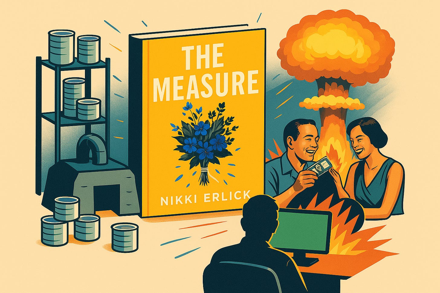 I was reminded of Nikki Erlick's The Measure book, which I recently read. The book begins with boxes being left on people's doorsteps all over the world, with the length of the string inside equal to the length of their remaining life. On the one hand, there are people whose future is completely uncertain, living with the threat of a potential apocalypse, and on the other hand, there are characters who either find out their remaining lifespan or refuse to find out without ever opening the box. I wanted to compare the similarities in these two different situations of "facing fate".