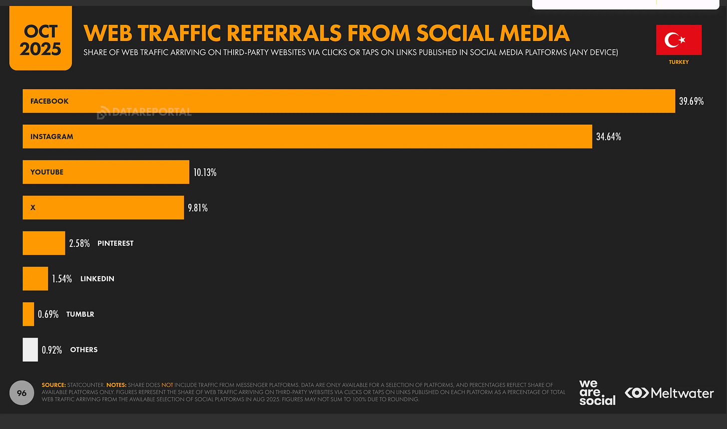 Pinterest’s global growth is already well known, but its rise in Turkey is particularly noteworthy. Estimates suggest between 7.5 and 10 million active users, with the majority aged 18–45 and a strong female skew.